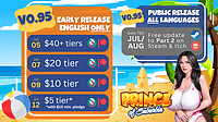 - January 13, 2023 by ViM Studios15#Prince of Suburbia, #V0.9, #Release Schedule, #Early Release, #Beach Update, #Patreon, #SubscribeStar, #Price ChangesPrince of Suburbia, Part 2 - V0.9 (first beach update) Early Release starts soon! Some important price/access changes will happen with this update. Please see our public post for more details and let... Continue reading